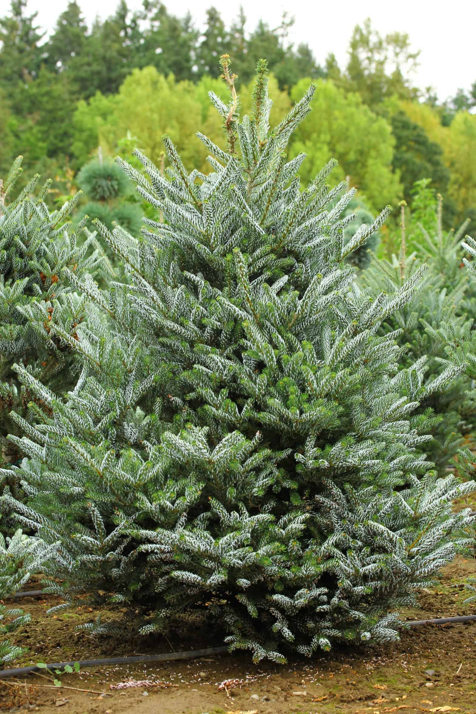 Silberlocke Korean Fir This elegant, pyramidal Korean fir has recurved green needles that show off gleaming, silver-white undersides to create a striking two-tone effect. Upright, purple cones stand out against the outstanding silvery tree. Hardiness Growth Rate Esposure HxW@10yrs Zones 5-8 Intermediate Sun/Part Shade 6’x3′