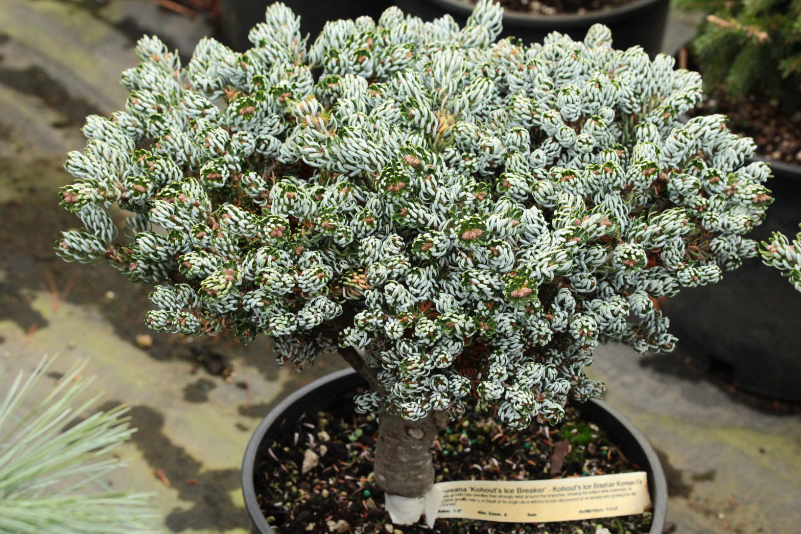 Kohout’s Ice Breaker Korean Fir Spring’s new growth has needles that strongly twist around the branches, showing the brilliant white undersides. Its incredibly slow growth rate is a result of its origin as a witch’s broom discovered on an already-slow-growing tree with similarly curved needles. Hardiness Growth Rate Esposure HxW@10yrs Zones 5-8 Miniature Sun 1’x1.5′